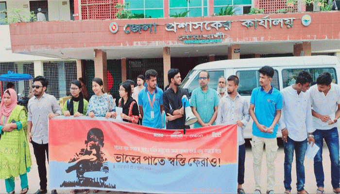 ‘ভাতের পাতে স্বস্তি ফেরাও’ স্লোগানে ভরা মৌসুমে চালের দাম বৃদ্ধির প্রতিবাদে নোয়াখালীতে বিক্ষোভ হয়েছে। মঙ্গলবার সকাল ১১টায় নোয়াখালী জেলা প্রশাসক কার্যালয়ের সামনে খাদ্য নিরাপত্তা নেটওয়ার্কের উদ্যোগে বিভিন্ন সংগঠন এ কর্মসূচিতে অংশগ্রহণ করেন।