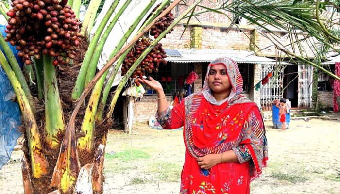 যশোরের কেশবপুরে সৌদি আরবের মরিয়ম খেজুর উৎপাদন করে সফল হয়েছেন নারী উদ্যোক্তা নুসরাত জাহান লিজা। দীর্ঘ প্রচেষ্টায় বীজ থেকে চারা উৎপাদন করে ছয় বছর আগে বাড়ির আঙিনার সারি সারি খেজুর গাছ রোপণ করেন তিনি।