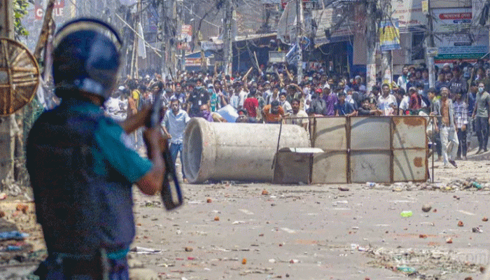 থানার উল্টো দিকে অবস্থিত একটি ভবনের সিসিটিভি ফুটেজে দেখা যাচ্ছে, পুলিশ গুলি চালানো শুরু করার পর প্রাণ বাঁচাতে গলির ভেতর দিয়ে ছুটে পালাচ্ছেন বিক্ষোভকারীরা।