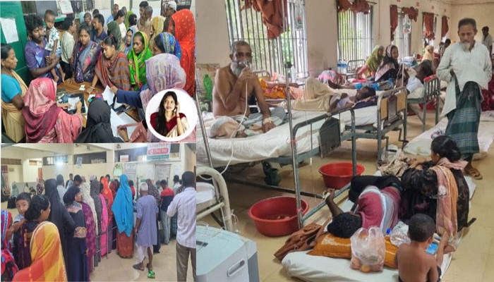 বৃহস্পতিবার (২১ আগস্ট) সকালে উপজেলা স্বাস্থ্য কমপ্লেক্সে গিয়ে দেখা যায়, সকাল থেকেই বহির্বিভাগে রোগীর লম্বা লাইন। নারী-শিশু-বৃদ্ধ সবাইকে নিয়ে স্বজনদের উপচেপড়া ভিড়। ৫০ শয্যার স্বাস্থ্য কমপ্লেক্স হলেও প্রতিদিন গড়ে ৮০ থেকে ৯০ জন রোগী ভর্তি হচ্ছে অন্তবিভাগে। ফলে শযার অভাবে ওয়াডের মেঝেতে অথবা বারান্দায় শুয়ে চিকিৎসা নিতে হচ্ছে। অবস্থা সম্পন্নরা ছুটছেন স্থানীয় বেসরকারি ক্লিনিকে।