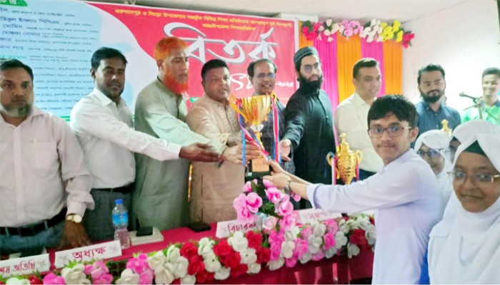 বিতর্কেবিজয়ীওঅংশগ্রহণকারী শিক্ষার্থীদের মাঝে পুরস্কার ও সম্মাননা স্মারক প্রদান করেন অতিথিবৃন্দ।