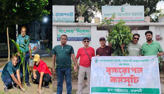গাছের চাঁরা রোপণ করি, গ্রীন সিটি খ্যাত রাজশাহী মহানগরীর সুনাম ধরে রাখি" - এই প্রতিপাদ্যকে সামনে রেখে রাজশাহী রিপোর্টার্স ইউনিটি (আরআরইউ) মাসব্যাপী বৃক্ষরোপণ কর্মসূচি পালন করেছে।