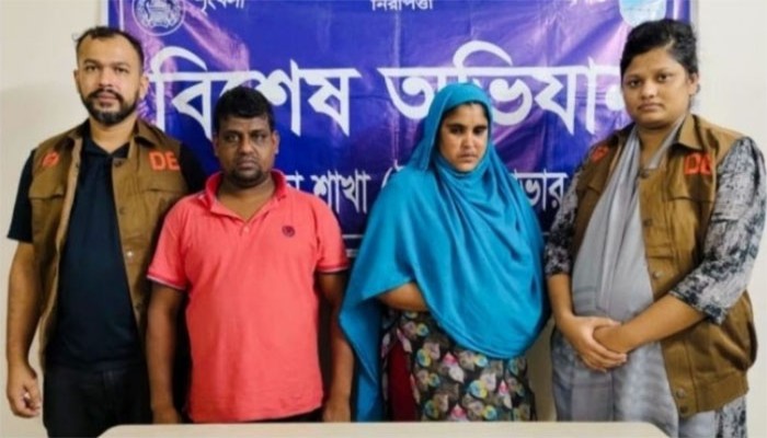 গ্রেফতারকৃতরা হলেন- গোপালগঞ্জ জেলার সদর থানার লক্ষীপুর এলাকার মৃত হবি খাঁ’র ছেলে মনির খাঁ (৩৮) এবং তার স্ত্রী শ্যামলী খাতুন (৩২)।