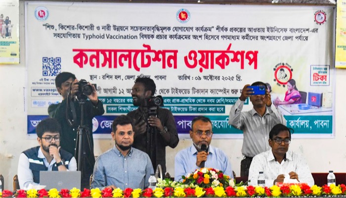 শিশুকে টাইফয়েড জ¦র থেকে সুরক্ষা প্রদানের লক্ষ্যে আগামী ১২ অক্টোবর থেকে শুরু হতে যাওয়া টাইফয়েড টিকাদান ক্যাম্পেইনে পাবনা জেলায় প্রায় আট লক্ষ