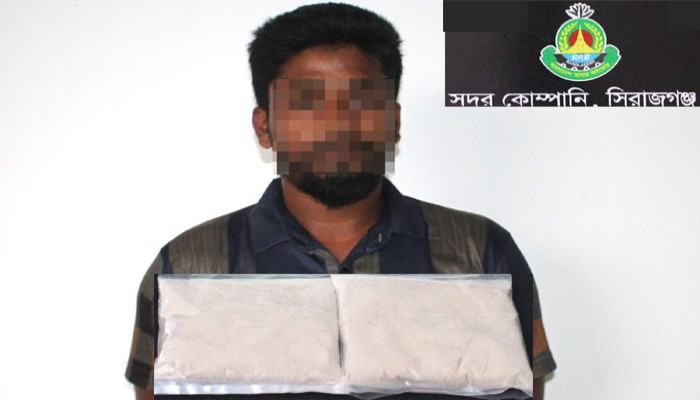সিরাজগঞ্জের সলঙ্গায় ৩১১ গ্রাম হেরোইনসহ এক মাদক ব্যবসায়ীকে আটক করেছে র্যাব-১২।