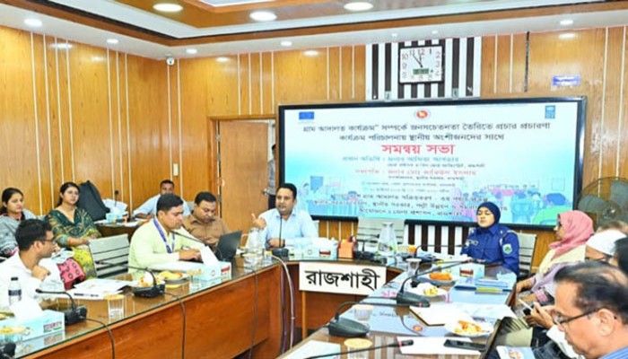 রোববার (১৯ অক্টোবর) সকালে রাজশাহী জেলা প্রশাসকের সম্মেলন কক্ষে আয়োজিত এক সমন্বয় সভায় প্রধান অতিথির বক্তব্যে এসব কথা বলেন স্থানীয় সরকার শাখার উপপরিচালক মো. জাকিউল ইসলাম। ‘গ্রাম আদালত কার্যক্রম সম্পর্কে জনসচেতনতা তৈরির লক্ষ্যে প্রচার-প্রচারণা জোরদার করতে স্থানীয় অংশীজনদের সঙ্গে সমন্বয় সভা’ শীর্ষক এই অনুষ্ঠানের আয়োজন করে জেলা প্রশাসন।