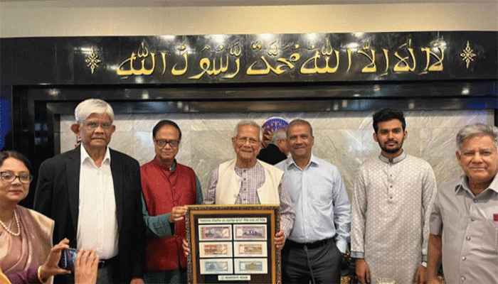 প্রধান উপদেষ্টা ড. মুহাম্মদ ইউনূসের কাছে নতুন ছয় ব্যাংক নোটের ছবি হস্তান্তর করেছেন বাংলাদেশ ব্যাংকের গভর্নর আহসান এইচ মনসুর। এসময় উপদেষ্টা পরিষদের কয়েকজন সদস্য তার সঙ্গে উপস্থিত ছিলেন।