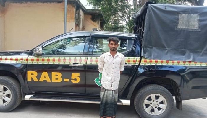 বুধবার (২ জুলাই) দুপুর পৌনে ২টায় দূর্গাপুর থানাধীন বর্ধনপুর পশ্চিমপাড়া এলাকা থেকে তাকে গ্রেফতার করা হয়।