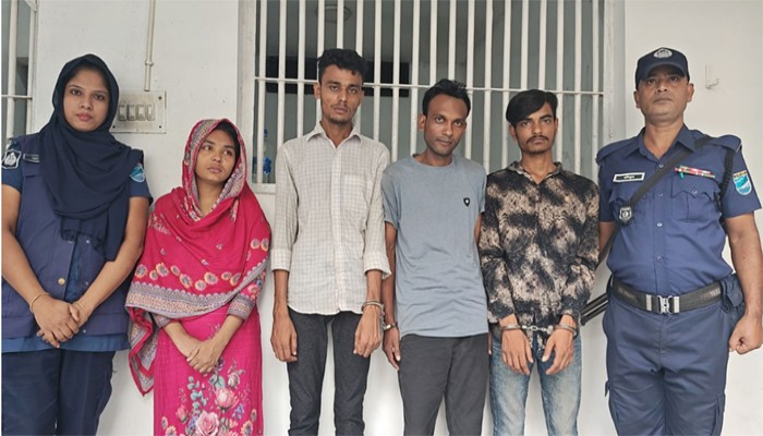 গ্রেপ্তারকৃতরা হলেন- শরিফুল (২৫), জয়নাল (২৫), কাওসার হোসেন কনক (২০) ও আনমনা ওরফে মোহনা।