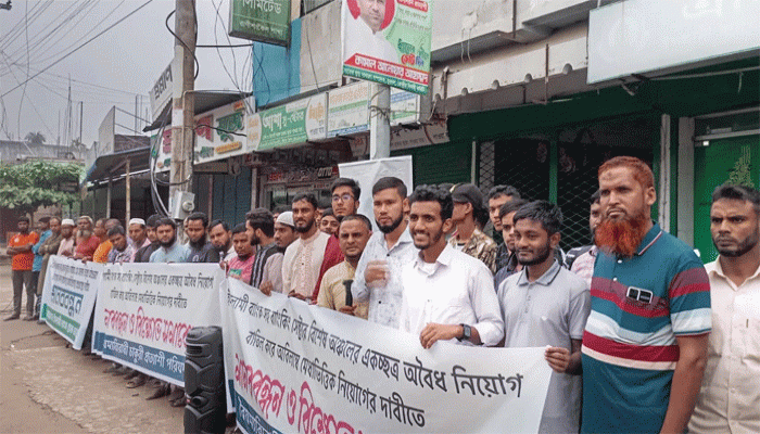 মানববন্ধনে বক্তব্য রাখেন, চাকুরী প্রত্যাশি সাব্বির হোসেন, কাজল, রিয়াজুল ইসলাম, শামিম, সোহেল, আইনাল হক, ফারজানা আক্তার প্রমুখ।