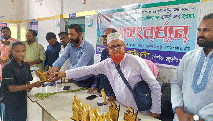জাপান ফুটবল এসোসিয়েশন কর্তৃক অনুর্ধ্ব ১৪ ফুটবল টুর্নামেন্টে জাতীয় পর্যায়ে ঠাকুরগাঁওয়ের রাণীশংকৈল রাঙ্গটুঙ্গি প্রমিলা ফুটবল দল রানার্স আপ হওয়ায় বুধবার (৮অক্টোবর) স্বাস্থ্যসেবা ডিজিটাল ডায়াগনস্টিক সেন্টার এর আয়োজনে গণসংবর্ধনা দেওয়া হয়।