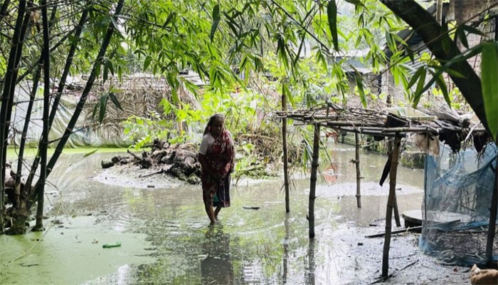 গ্রামের বাসিন্দা রাশেদা বিবি (৫৫) বলেন, ঘরের মেঝেতে হাটুপানি। চুলা পানির নিচে। কোথায় থাকবো, কোথায় রান্না করবো কিছুই বুঝে উঠতে পারছি না। শেষ পর্যন্ত ছেলের বাড়িতে আশ্রয় নিতে হয়েছে।