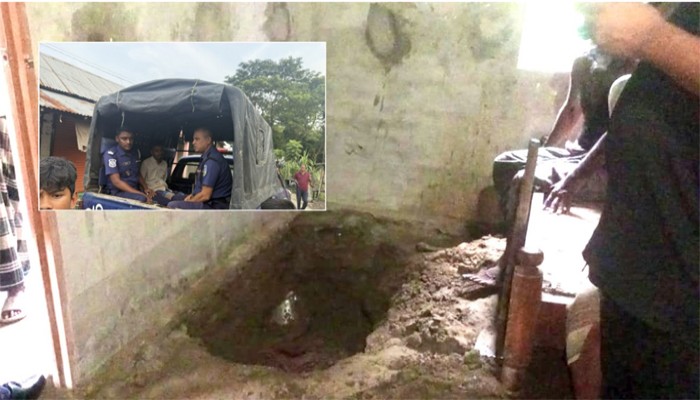 পরে নিজ শোবার ঘরেই তাদের মরদেহ মাটিচাপা দেন তিনি। আজ বৃহস্পতিবার সকালে রাজু নিজেই বাবা-মাকে খুঁজে পাওয়া যাচ্ছে না বলে বোনদেরকে শ্বশুরবাড়ি থেকে খবর দিয়ে নিয়ে আসে। দুপুরে এলাকাবাসী ও বোনেরা খোঁজাখুঁজি করে ঘরে ঢুকলে মাটির গর্ত দেখতে পান। এতে এলাকাবাসীর সন্দেহ হলে ছেলেকে আটক করে ত্রিশাল থানা পুলিশকে খবর দেয়।