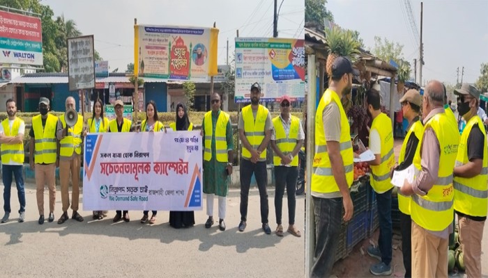 জাতীয় নিরাপদ সড়ক দিবস-২০২৫ উপলক্ষে নিরাপদ সড়ক চাই (নিসচা), রাজশাহী জেলা শাখা জনসচেতনতামূলক কর্মসূচি পালন করেছে।