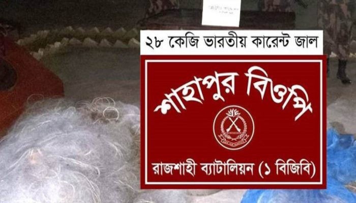 রাজশাহীর কাটাখালী থানাধীন সাহাপুর মধ্যপাড়া এলাকায় পদ্মা নদীতে অভিযান চালিয়ে ২৮ কেজি ভারতীয় অবৈধ কারেন্ট জাল জব্দ করেছে বর্ডার গার্ড বাংলাদেশ (বিজিবি)।